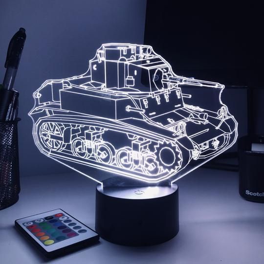 Beling 3D lampa, M3 Stuart ľahký Tank, 7 farebná 1PDSXER